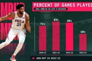 MVP到“缺席王”?22-23赛季后恩比德出勤断崖式下跌 上赛季仅23%