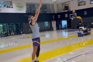 股四头肌拉伤恢复中!湖记晒克莱伯训练 三分线外接球投篮