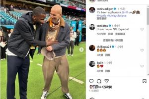 吕迪格晒现场观战NFL西班牙赛照片,齐达内出镜